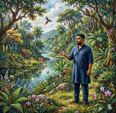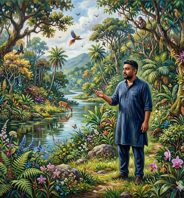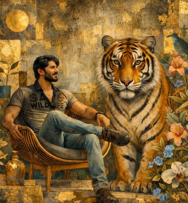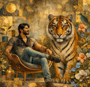 KRIYA ANGELS is centered on biodiversity and the living world. It brings together portrait-led and concept-driven artworks that place remarkable individuals within visually rich settings inspired by wildlife, nature, and ecological beauty.